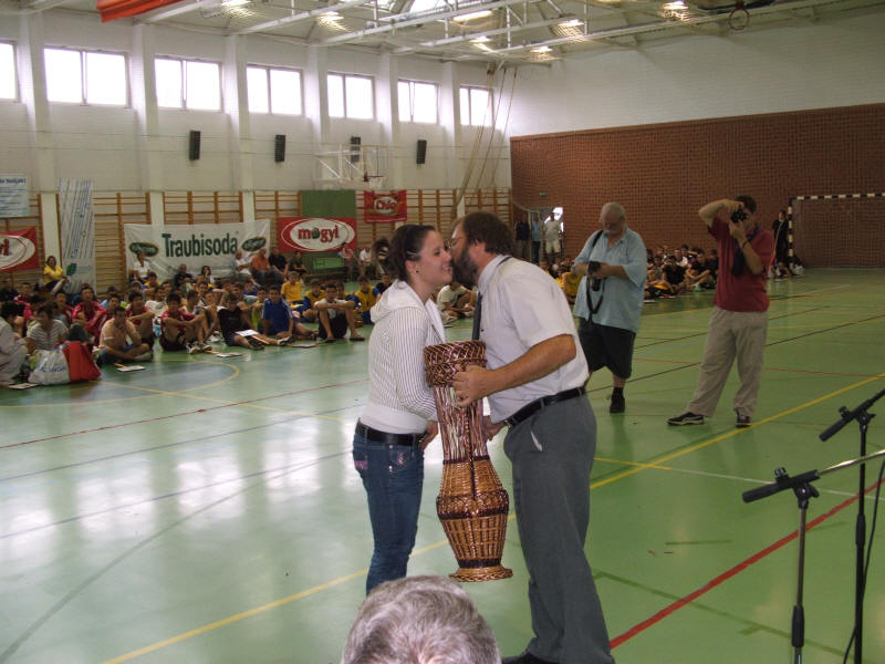 A legjobb magyar leány csapatnak járó, viskiek által felajánlott vesszőből készült kupát Szabó Bettina, az Eötvös DSE csapatkapitánya vehette át.