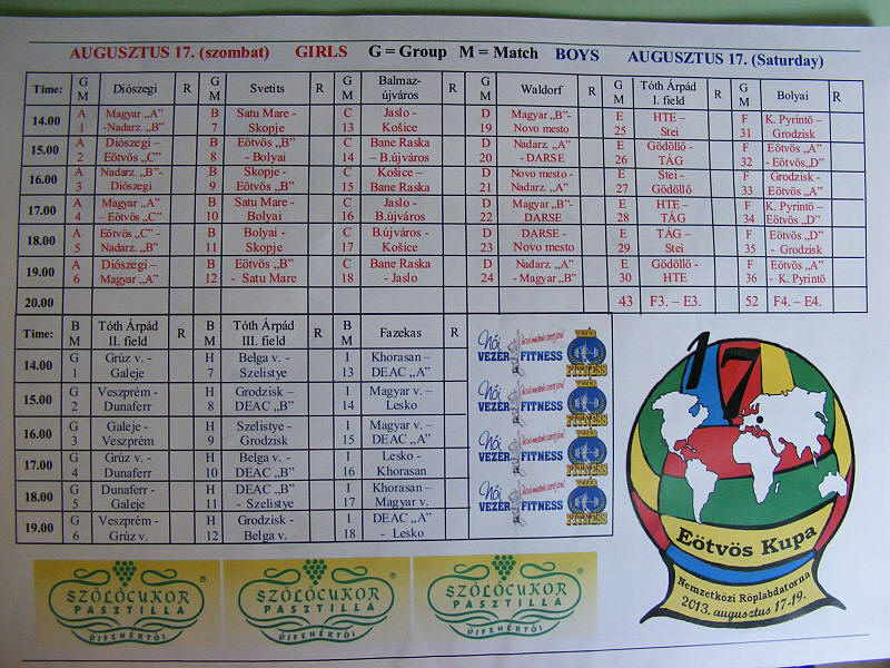 Az első versenynapon 9 pályán 56 mérkőzésre került sor.