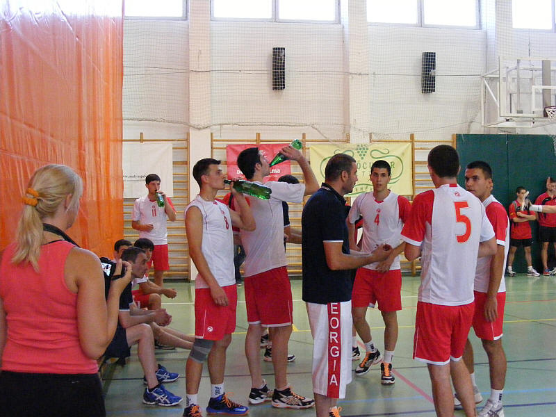 A grúz válogatott tagjait a traubisoda frissítette időkérés közben.