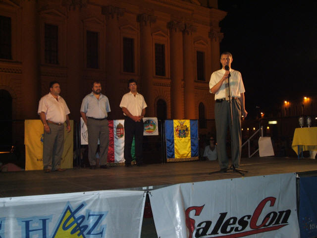 The four men on the stage symbolize the background of the Eötvös Cup.