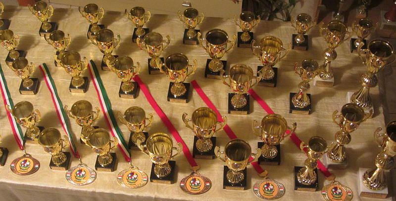 A verseny kupái és érmei.